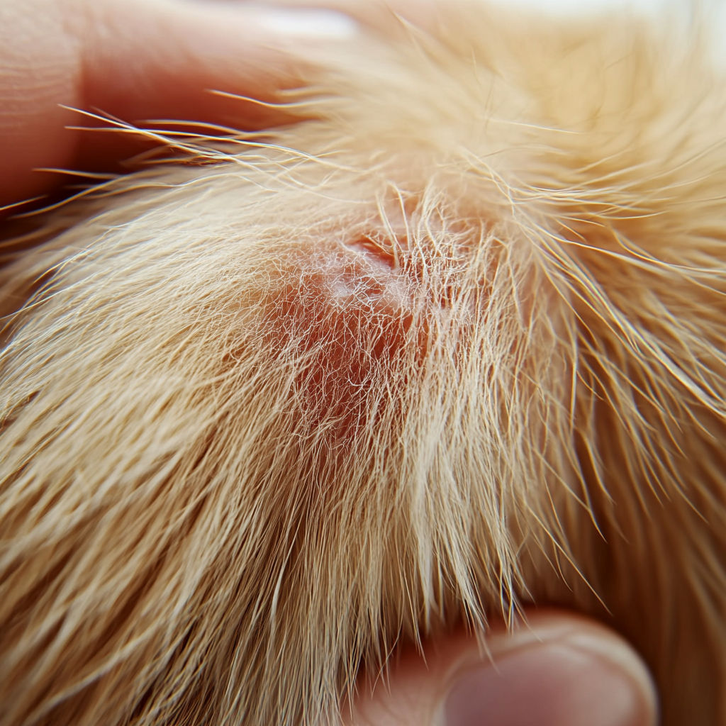 Fleas on the skin can be recognized by itching and visible bites. The bites often appear as small, red spots. Flea droppings can also be seen as black dots. Inspecting the environment is important to identify an infestation.