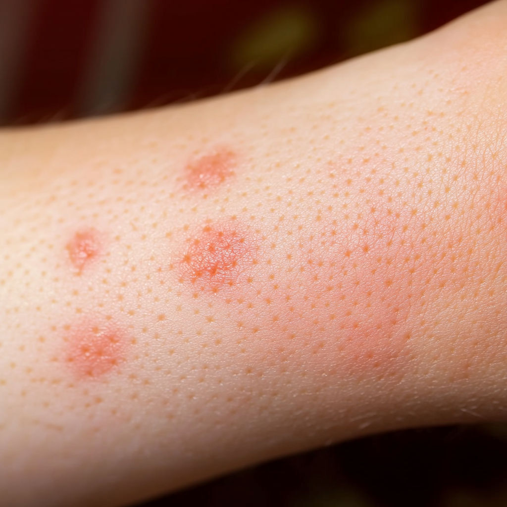 Tick Bite: Tick bites are often less visible but can cause skin redness, swelling, and intense itching. They prefer soft skin areas such as the belly, thighs, and arms and can trigger allergic reactions.