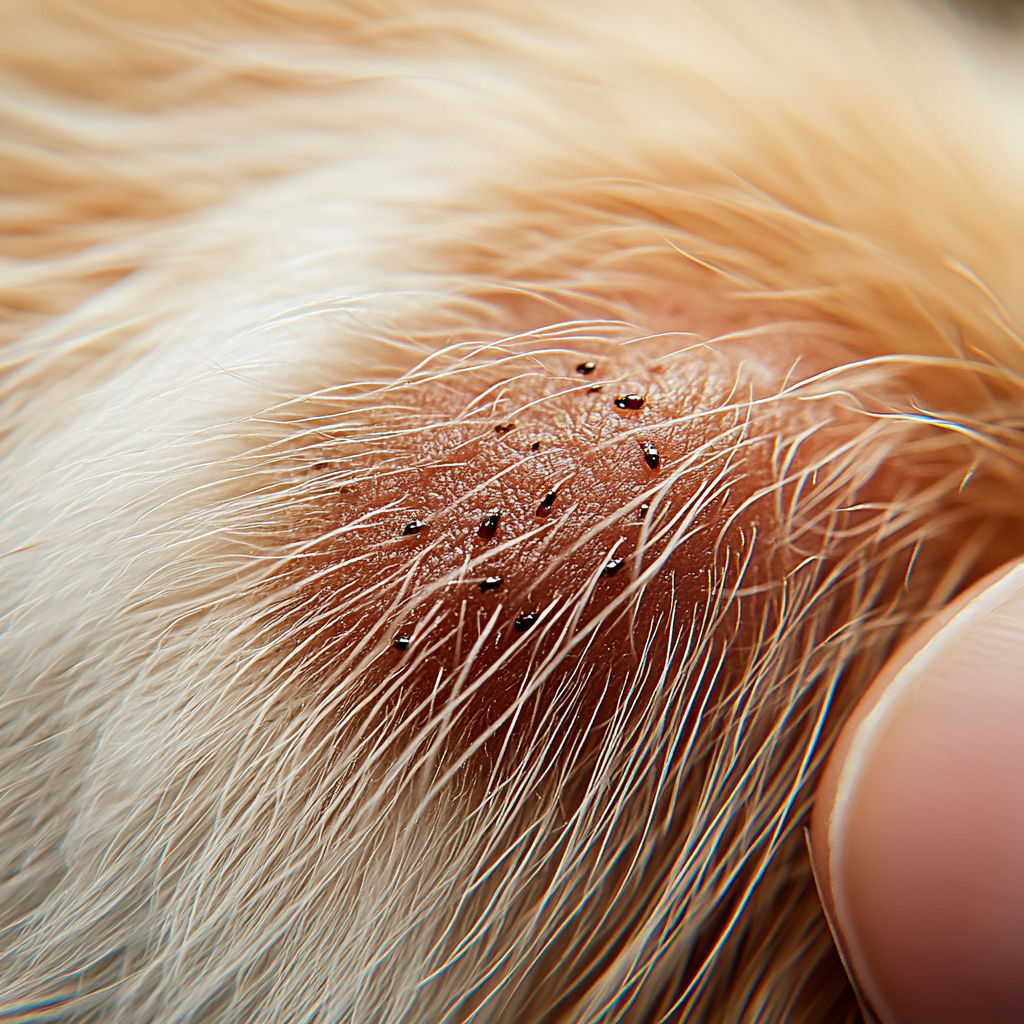 Fleas on rabbits are small and dark, similar to those on other animals. They hide in the fur and cause itching and restlessness. Rabbits can get fleas through contact with other animals or the environment. Regular inspections are important to detect an infestation.
