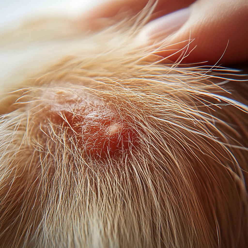 Flea bites appear as small red spots with a lighter center and can be swollen. They often occur in clusters or rows, particularly on the legs. The skin may itch and feel uncomfortable. Inspecting the environment is important to detect an infestation.