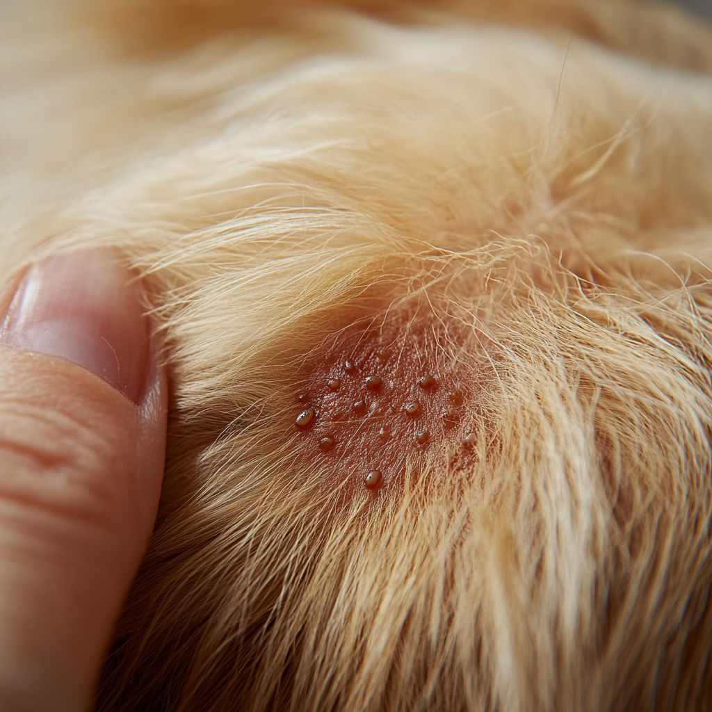 Fleas on dogs are small and flat, usually dark brown or black. They jump quickly and often hide in the fur. Dogs with fleas often show symptoms such as itching and scratching. Flea droppings can also be found in the fur, indicating an infestation.